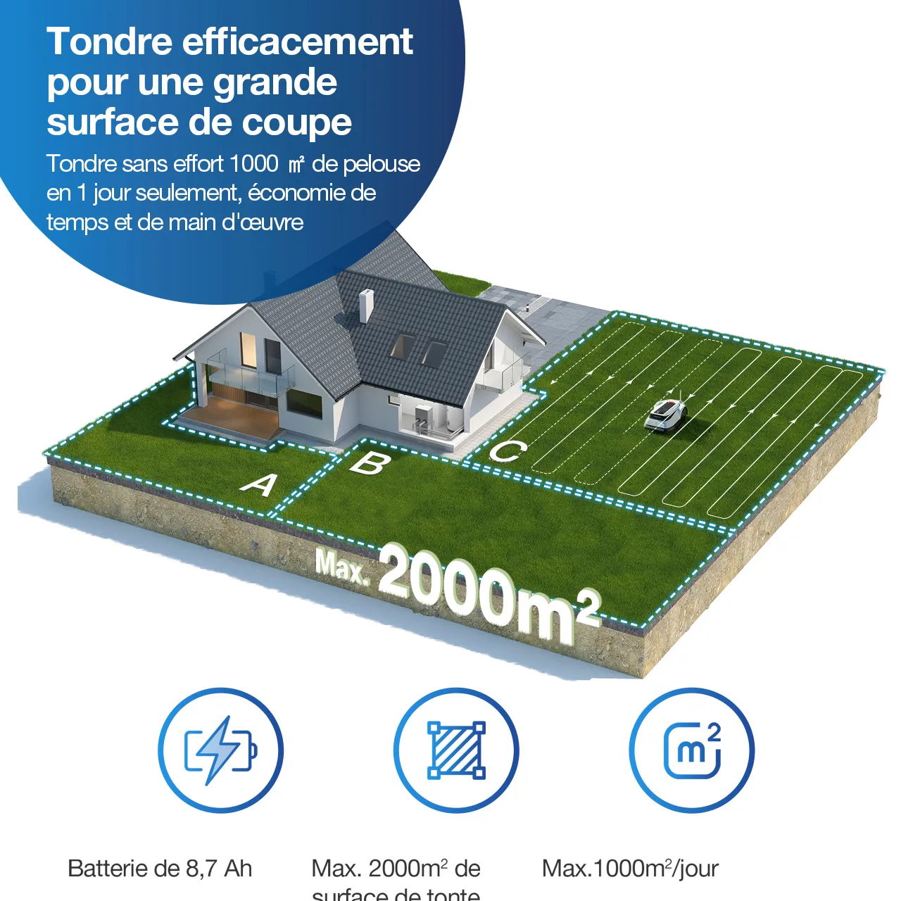 Intelligente 3D-Hindernisvermeidung AIVI: Die hochintelligente AIVI 3D-Hindernisvermeidungstechnologie sorgt für ein reibungsloses und sicheres Mähen.